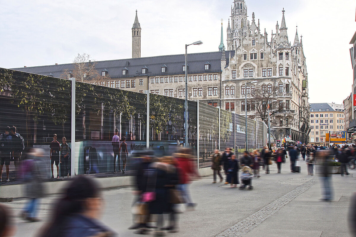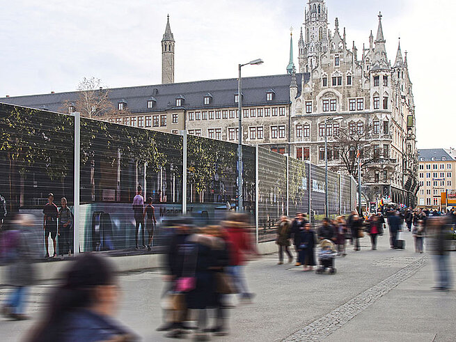 Whether scenic integration, advertising, artistic designs or other images – noise screening can be turned into a design element while fully retaining its acoustic properties.