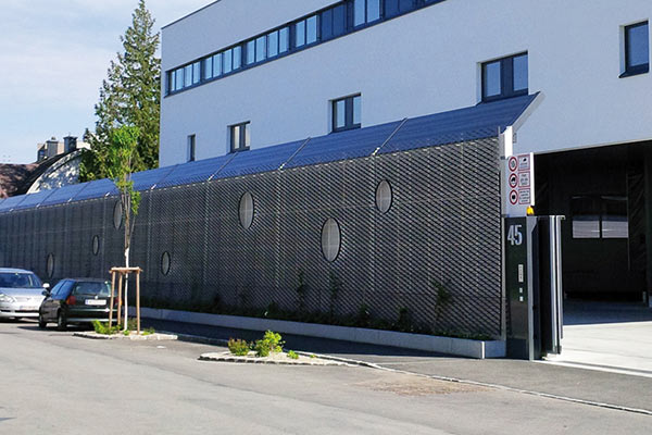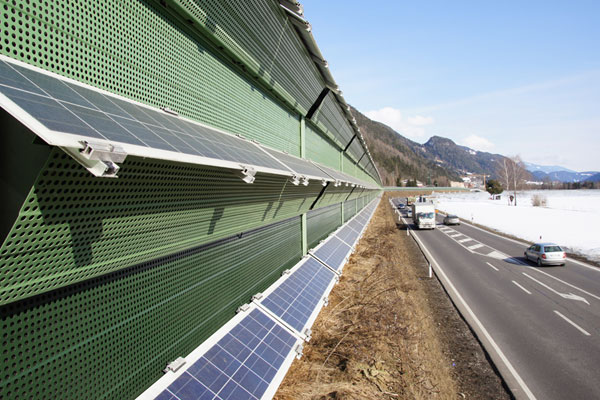 Noise barriers offer a valuable bonus serving as a background to photovolatic elements. Solar modules are attached to the barrier panels by special sound-absorbing elements, and there generate renewable energy.